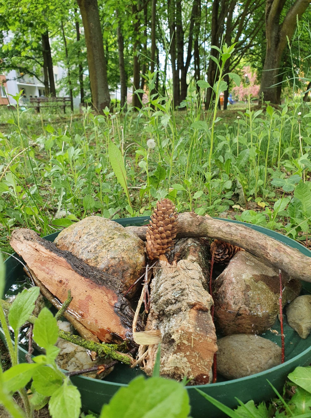Poidełka to niewielkie miski wypełnione kamykami, korą i gałęziami, aby pszczoły oraz inne owady, drobne ptaki czy jeże mogły w bezpieczny sposób ugasić pragnienie.