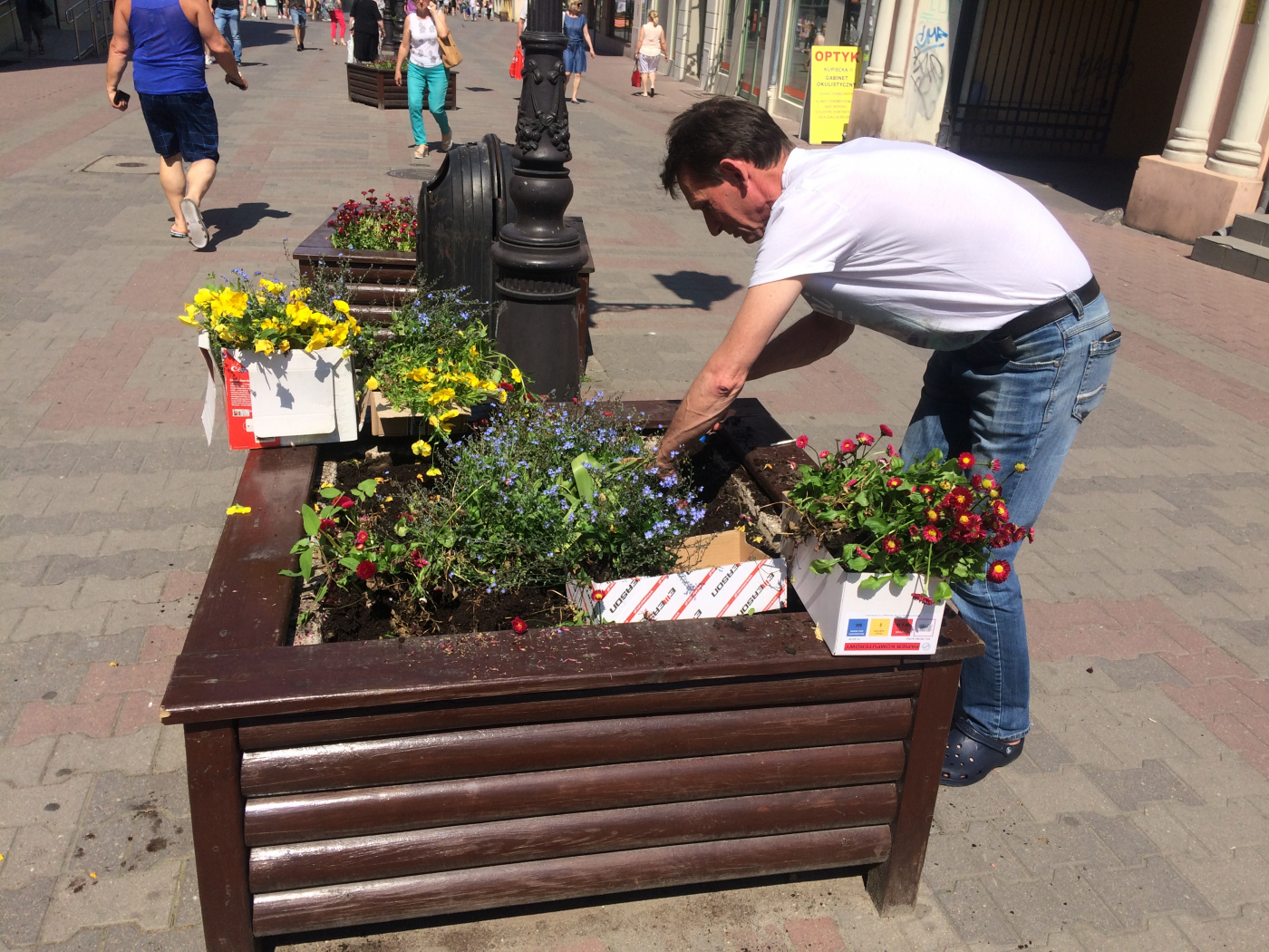 Od marca zielonogórski deptak ozdabiały bratki, stokrotki i niezapominajki – Lada dzień zaczynamy wymianę kwiatów na letnie. Chcieliśmy, aby te wiosenne jeszcze trochę zachwycały swoim urokiem – informuje Krzysztof Sikora, prezes Zakładu Gospodarki Komunalnej w Zielonej Górze. Dlatego ZGK postanowiło oddać je mieszkańcom. Na czym polegała akcja? To proste – wystarczyło przyjść na deptak i wykopać te rośliny, które się spodobały – dodaje. Jeżeli ktoś przyszedł „nieprzygotowany” pomagali mu nasi pracownicy. Do dyspozycji mieszkańców była ich fachowa pomoc, łopatki oraz doniczki.